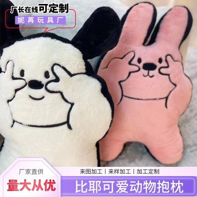 热卖可爱动物比耶抱枕来给生活比个耶粉小猪靠枕毛绒玩具家居用品