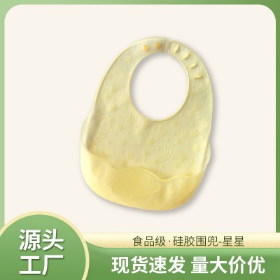 婴儿硅胶围兜星星口水兜宝宝吃饭围嘴立体防水学食兜儿童口水巾