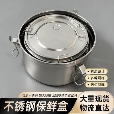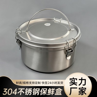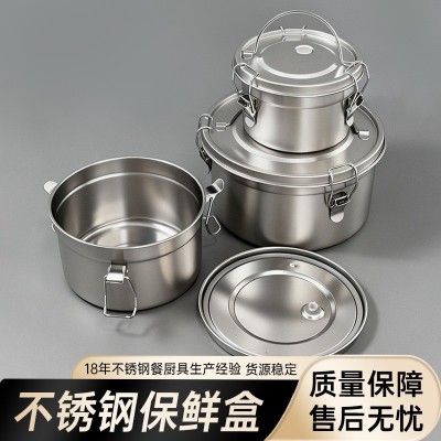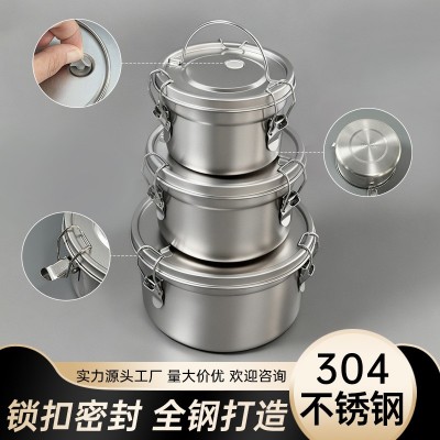 不锈钢304密封罐储物保鲜盒饭盒圆形便当盒带盖打饭户外露营锅具