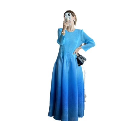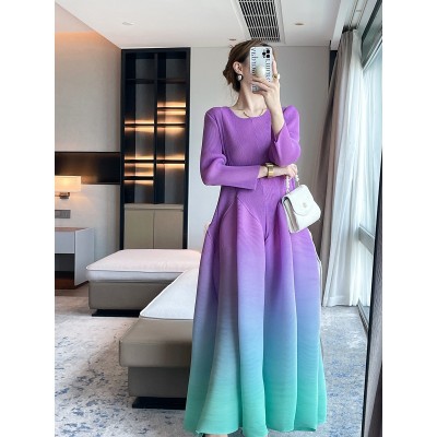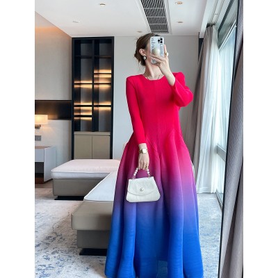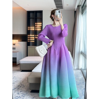 首页 > 男装 / 女装 / 内衣 > 女装 > 连衣裙 > 三宅2025秋季新款渐变色印花褶皱连衣裙通勤高级感收腰气质大摆裙