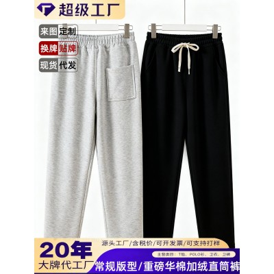 运动休闲裤加绒男款直筒裤长裤简约百搭加绒加厚宽松休闲卫裤