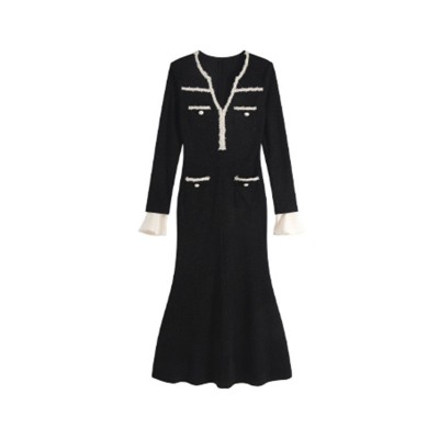 首页 > 男装 / 女装 / 内衣 > 女装 > 连衣裙 > 法式气质小香风V领长袖针织黑色连衣裙新款鱼尾收腰显瘦包臀长裙