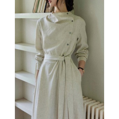首页 > 男装 / 女装 / 内衣 > 女装 > 连衣裙 > 贰羊设计暮云归高级感长袖斜门襟连衣裙女秋知识分子风收腰裙