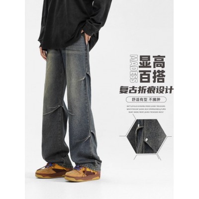 首页 > 男装 / 女装 / 内衣 > 男装 > 男装美式直筒水洗微喇牛仔裤男高级感折痕潮牌高街复古休闲长裤